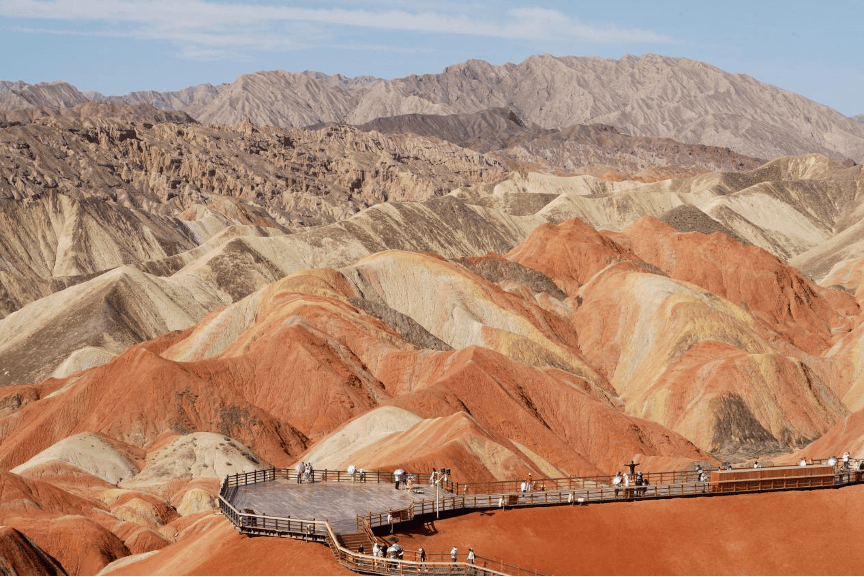 从敦煌前往张掖,游览七彩丹霞。
